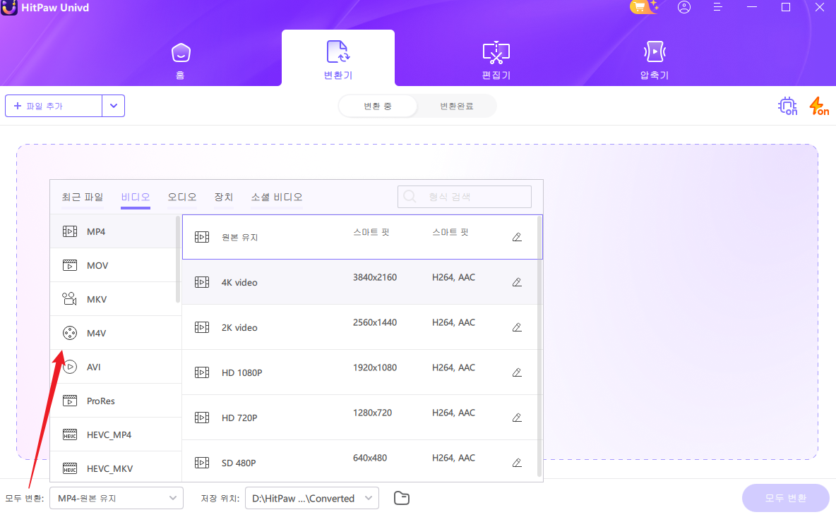 비디오가 드문 코덱이나 컨테이너를 사용하여 브라우저 재생에 실패하는 경우, 파일을 널리 지원되는 형식으로 변환하는 것이 실용적인 해결 방법입니다. HitPaw Univd는 안정적인 형식 변환, 웹 전달용 트랜스코딩, 재업로드 전 품질을 유지하는 편집이 필요한 크리에이터를 위해 설계된 사용자 친화적인 변환기이자 편집기입니다. MP4 컨테이너의 H.264 또는 널리 호환되는 WebM 프로필로 변환하면 웹 재생에서 발생하는 많은 지원되는 형식과 MIME 유형의 비디오를 찾을 수 없기 오류를 해결할 수 있습니다.