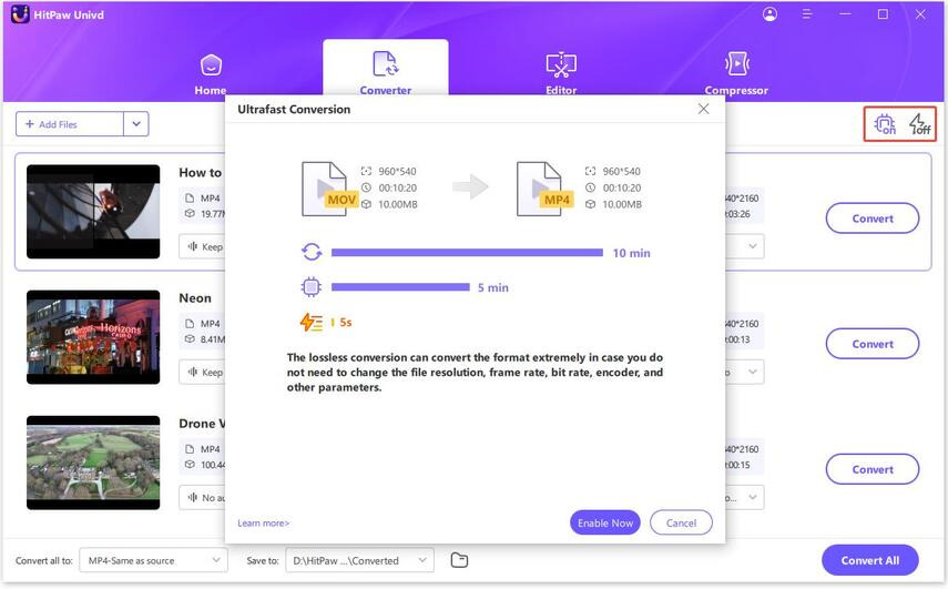 - 단계 6.하드웨어 가속을 활성화하고 출력 폴더를 선택합니다. 그런 다음 변환 또는 모두 변환을 클릭하여 변환을 시작합니다.