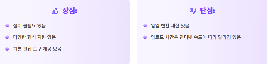 - 다양한 형식 지원을 원하면 CloudConvert 사용