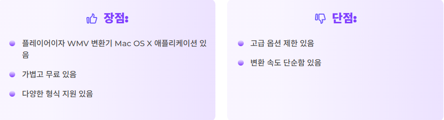 - 호환성 문제: WMV 파일은 iPhone, Android 장치 또는 Mac에서 WMV 변환기 Mac OS X 없이는 열리지 않을 수 있습니다. MP4는 범용성이 높아 거의 모든 장치에서 재생 가능합니다.