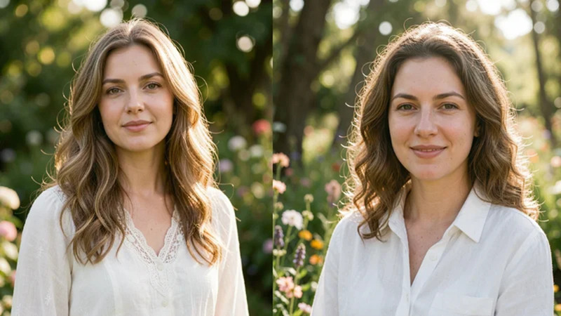 - Portrait photography, high quality, natural expression, 50mm f1.8, golden hour